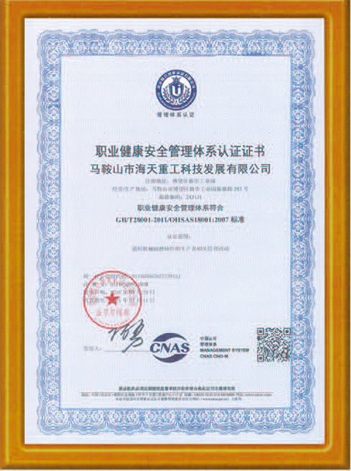 職業健康與安全管理體系認證證書