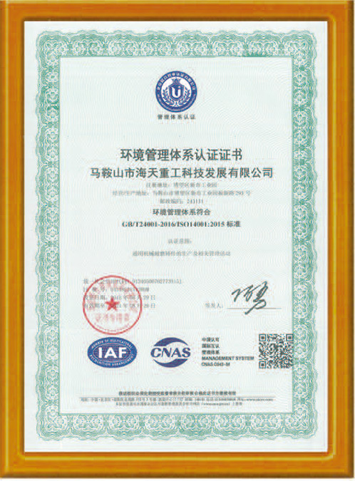 環境管理體系認證證書